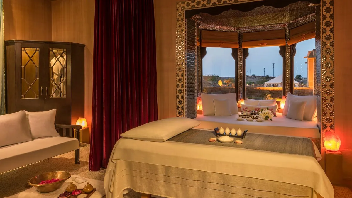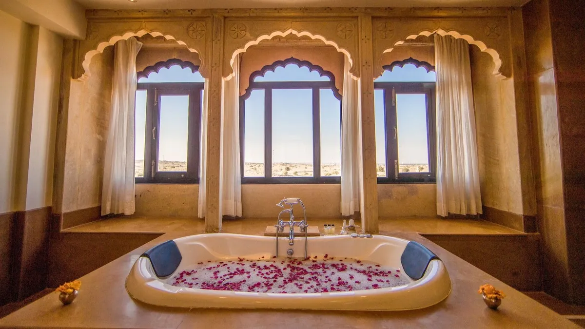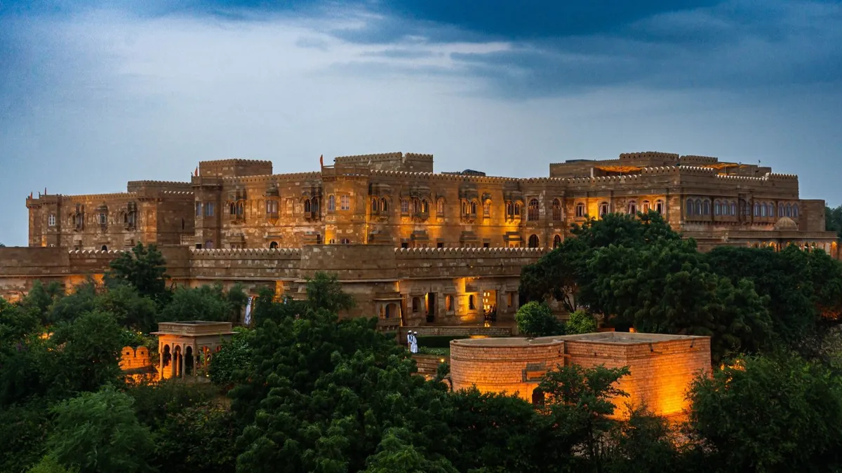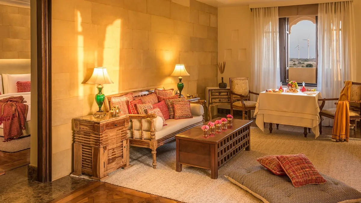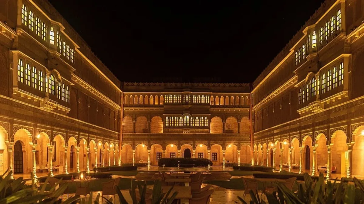 Suryagarh features 83 rooms, two stunning gardens, and magnificent courtyards. The prices for accommodation at the luxury hotel range from Rs 23,000 per night to Rs 76,000 per night.